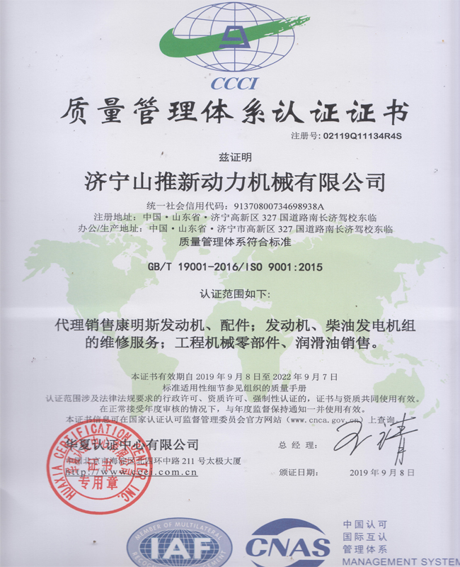 2018年重慶康明斯授權(quán)證書